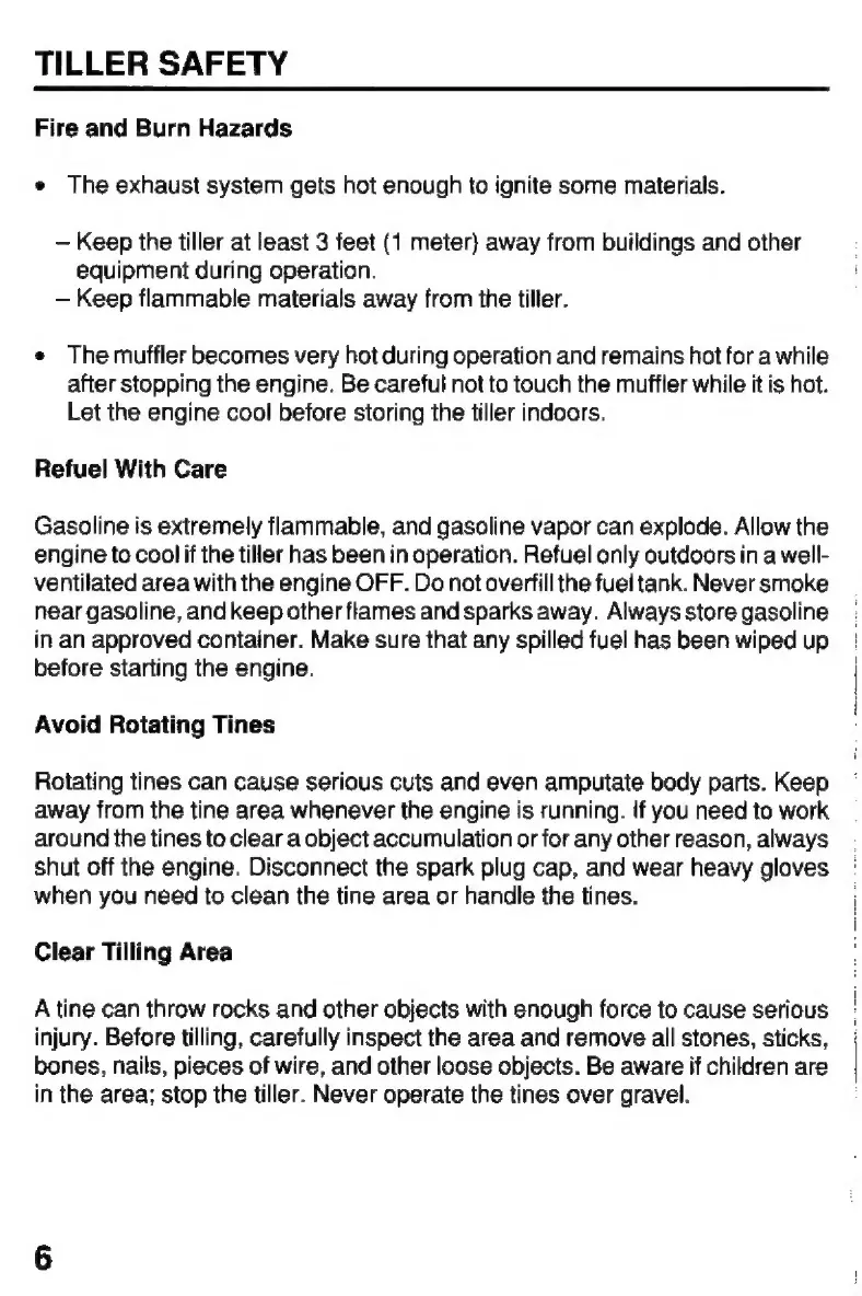 Honda FR750 - FIRE AND BURN HAZARDS; AVOID ROTATING TINES