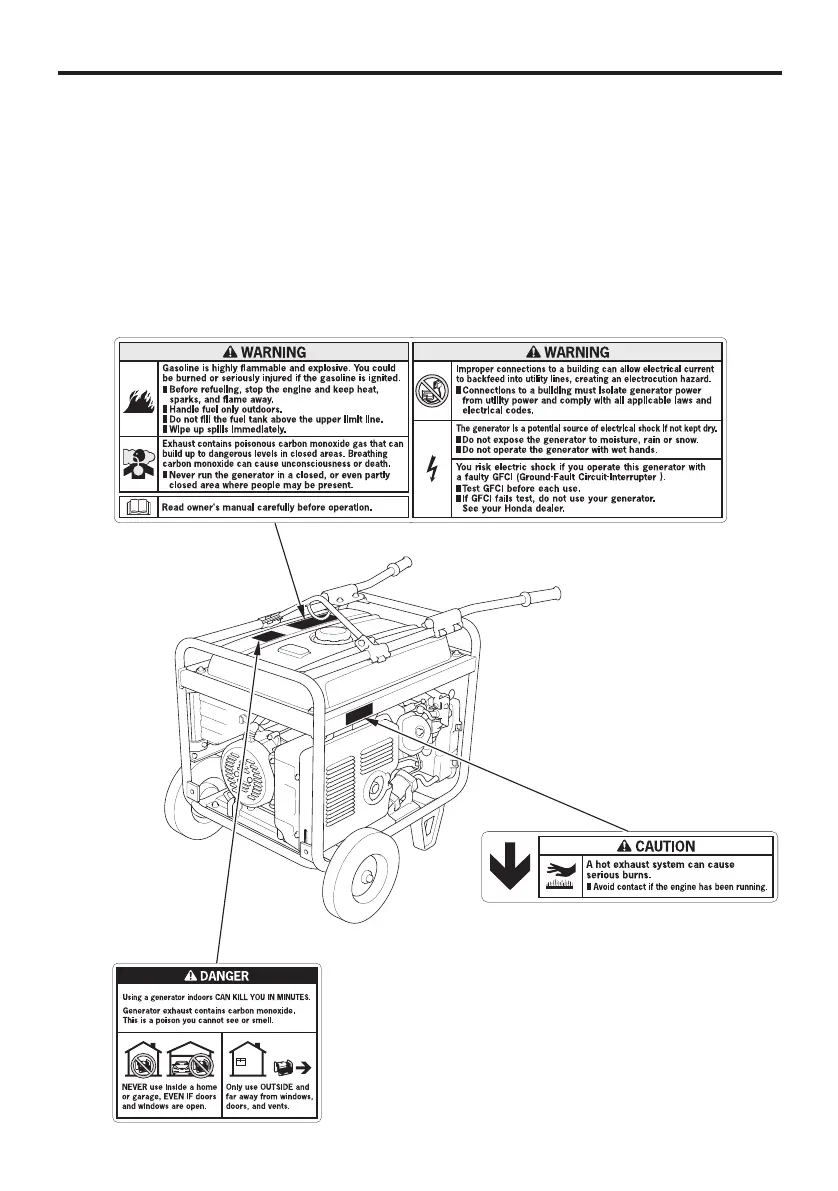 Honda Generator EB6500X - GENERATOR SAFETY; Safety Label Locations