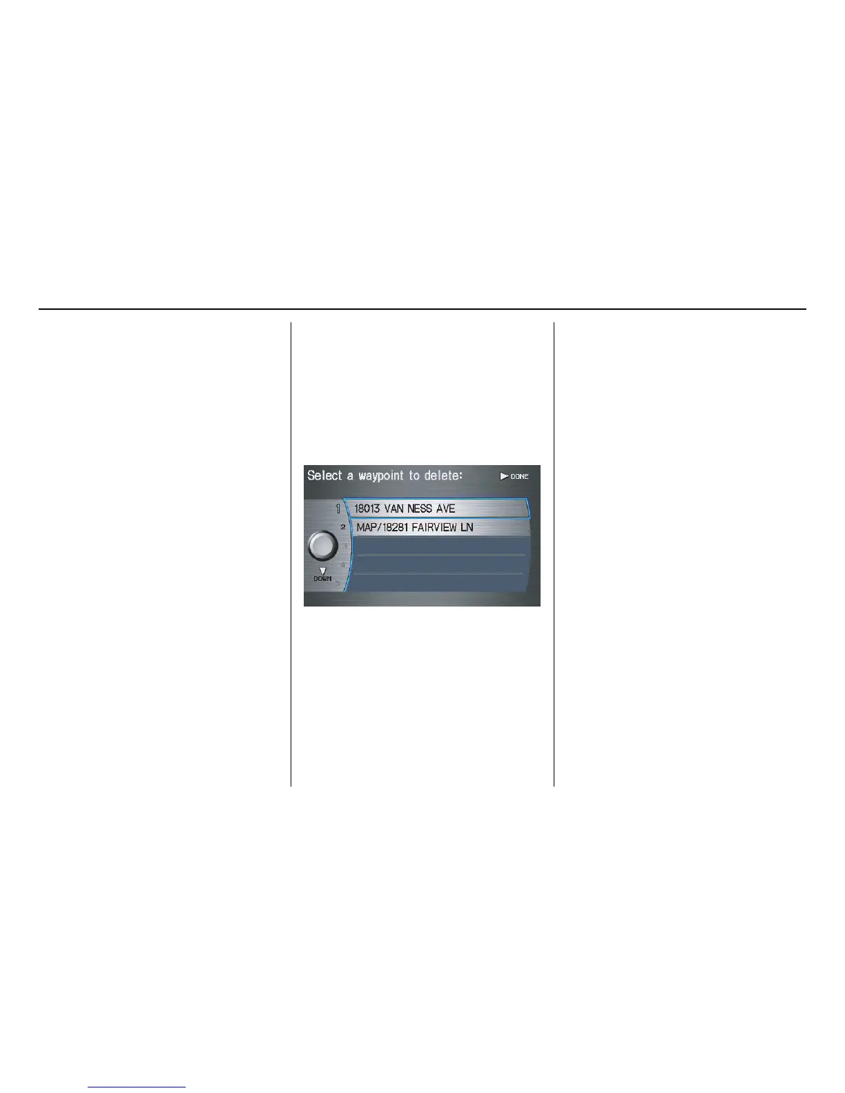 From the MENU screen (Route), if you