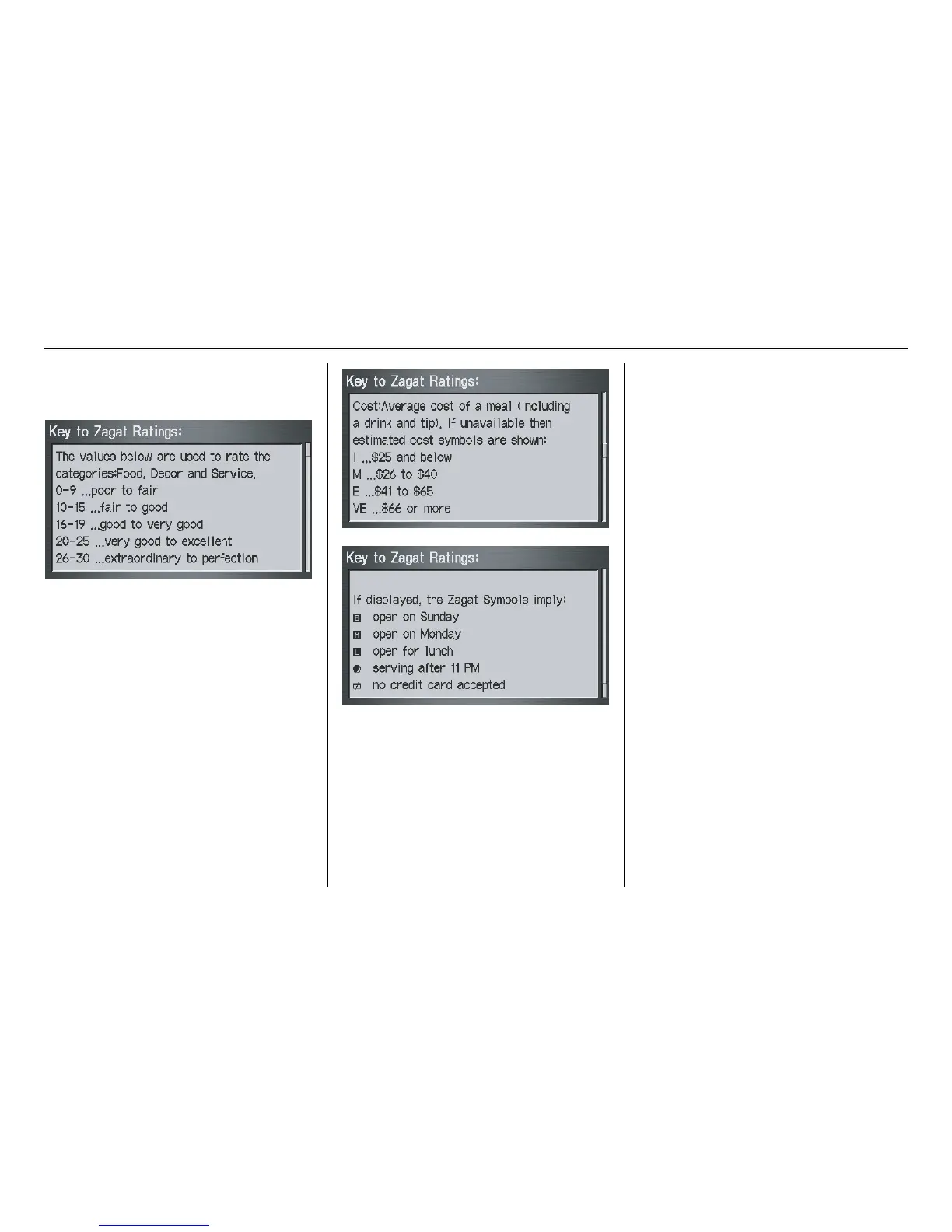 through the Key to Zagat Ratings