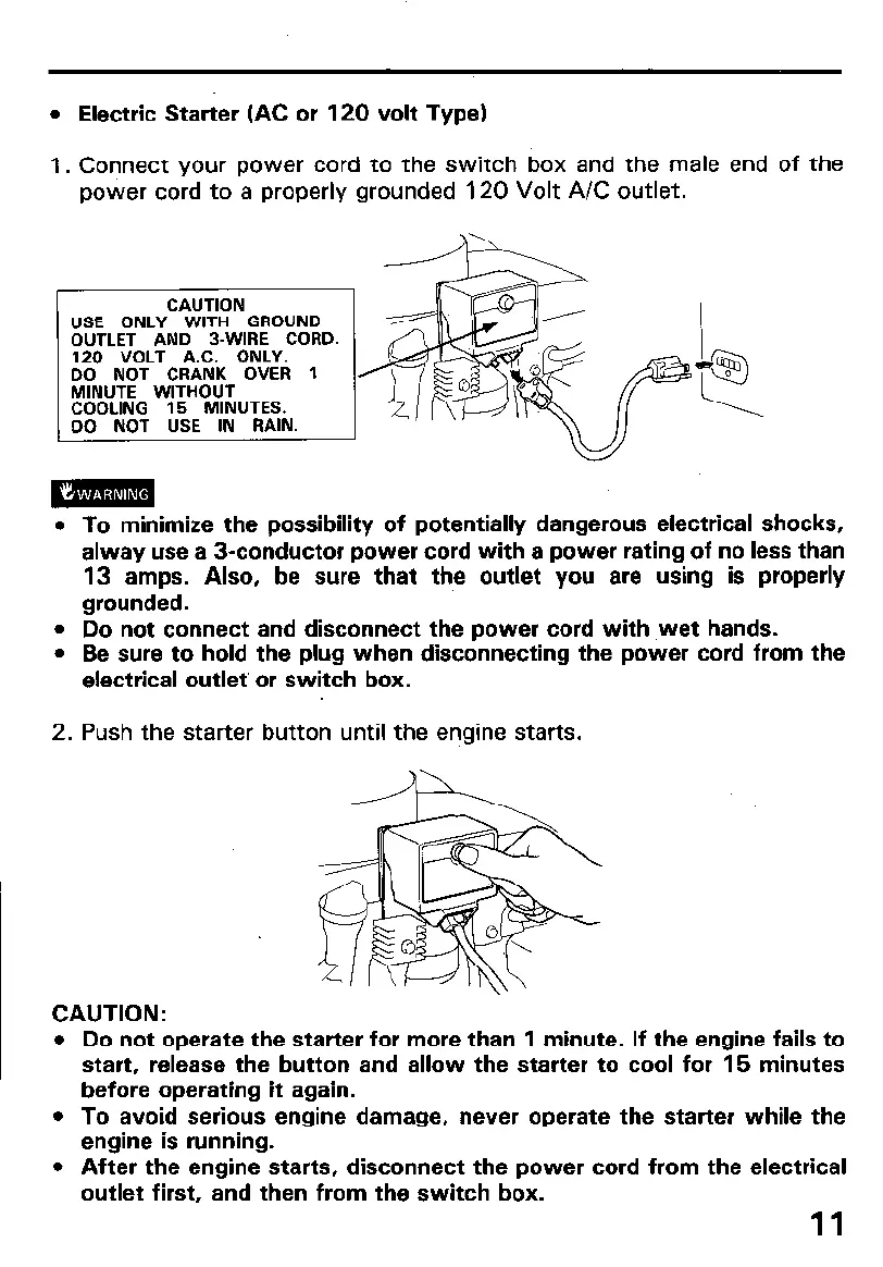 Do not operate the starter for more than 1 minute. If the engine fails to