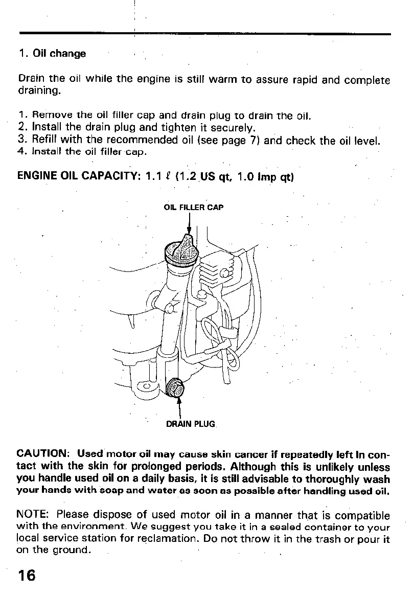 NOTE: Please dispose of used motor oil in a manner th.at is compatible