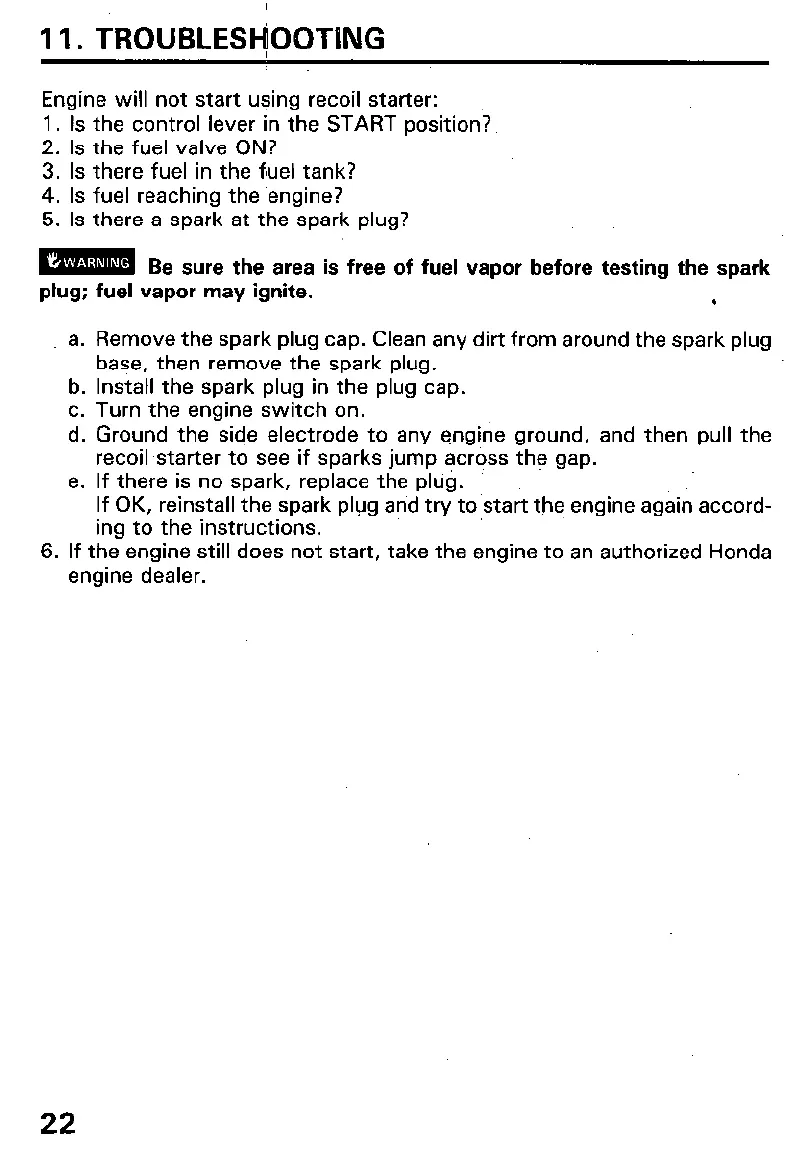 6. If the engine still does not start, take the engine to an authorized Honda