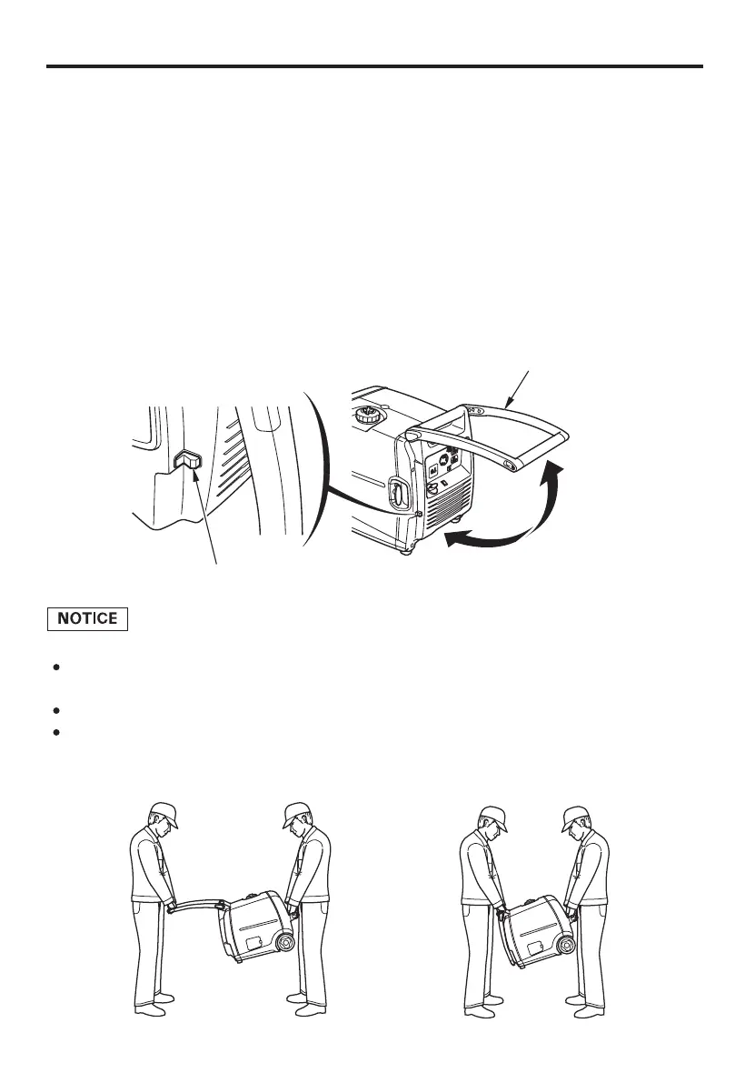 When two people carry the generator, close the folding handle.