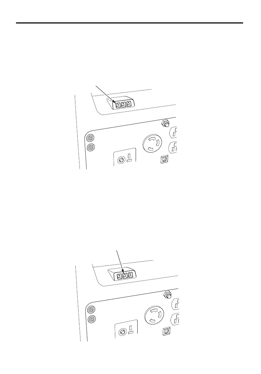 The output indicator (green) is illuminated when the generator is