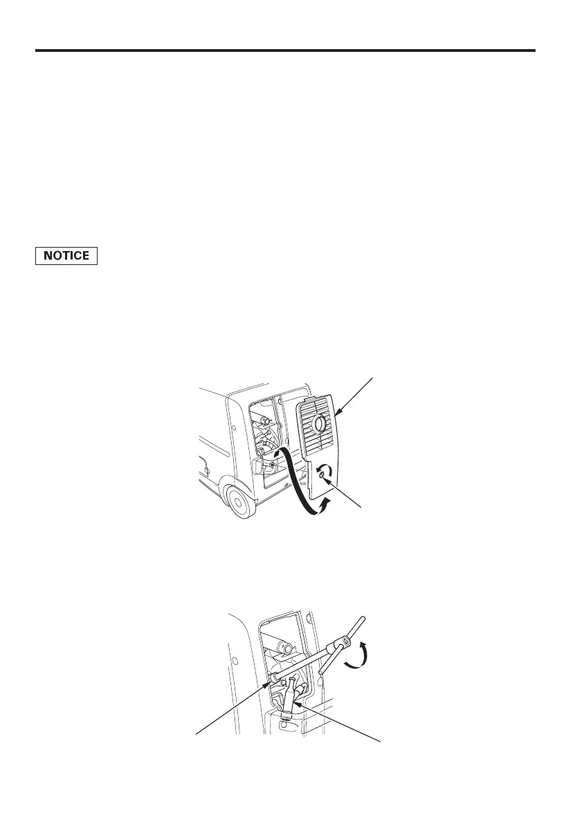 Loosen the cover screw and remove the spark plug maintenance