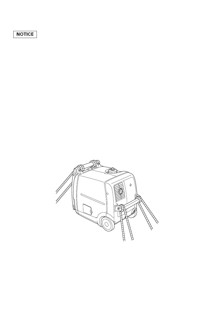 When using ropes or tie-down straps to secure the generator for