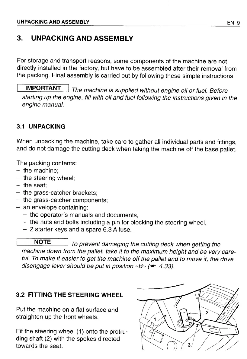 Honda HF2213 - Unpacking and Assembly; Unpacking and Initial Assembly