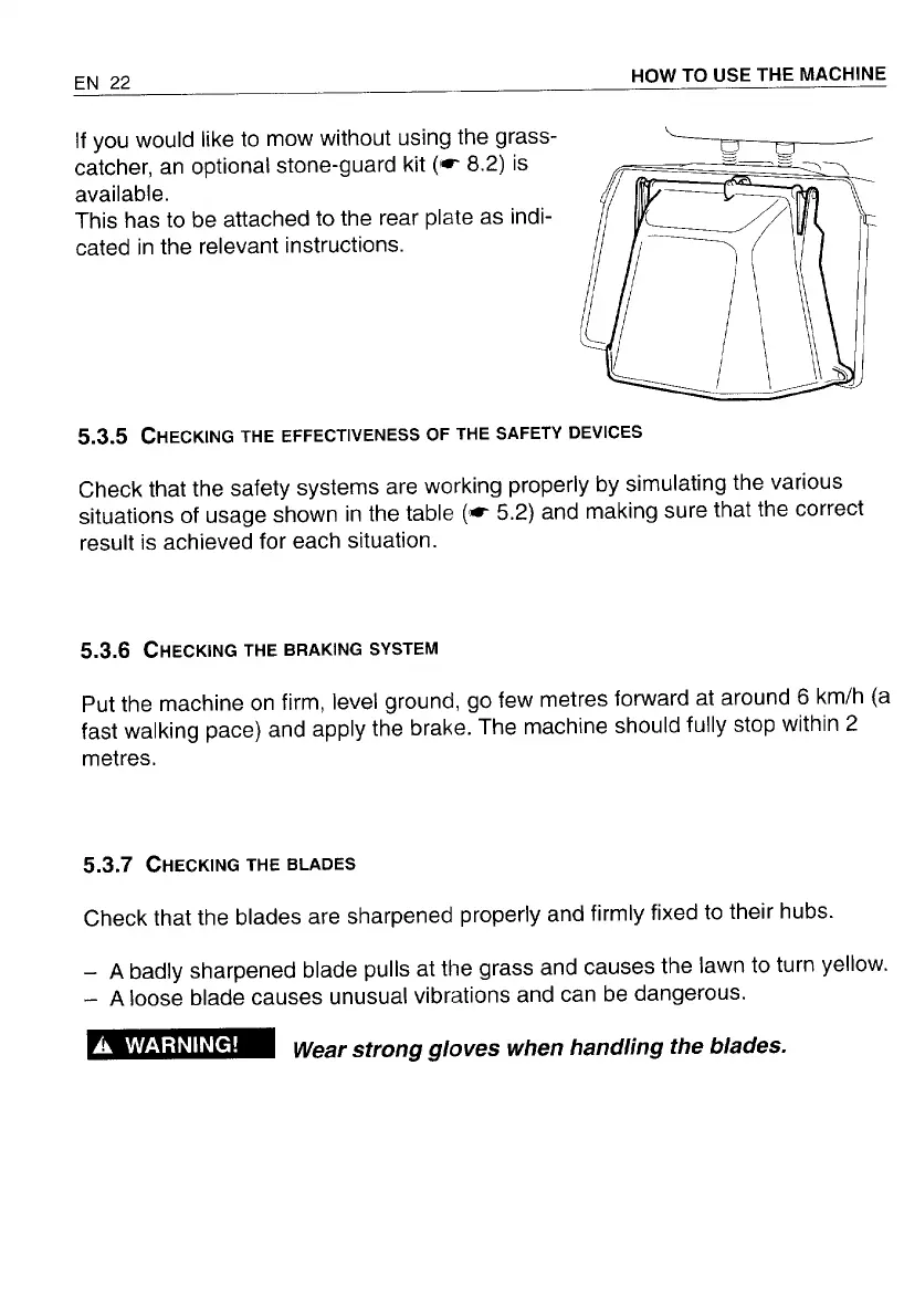 Honda HF2213 - Checking Safety and Braking Systems; Checking the Blades