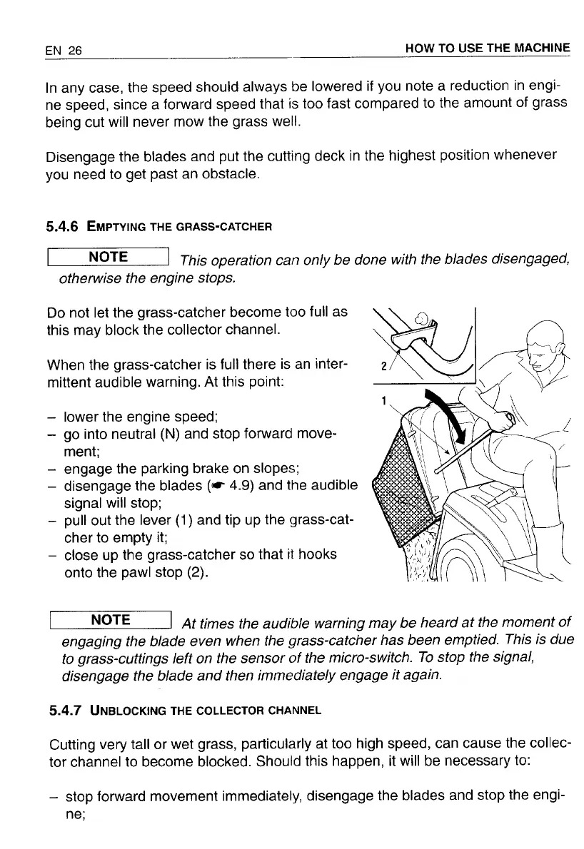 Honda HF2213 - How to Use the Machine (cont.); Emptying and Unblocking Collector Channel