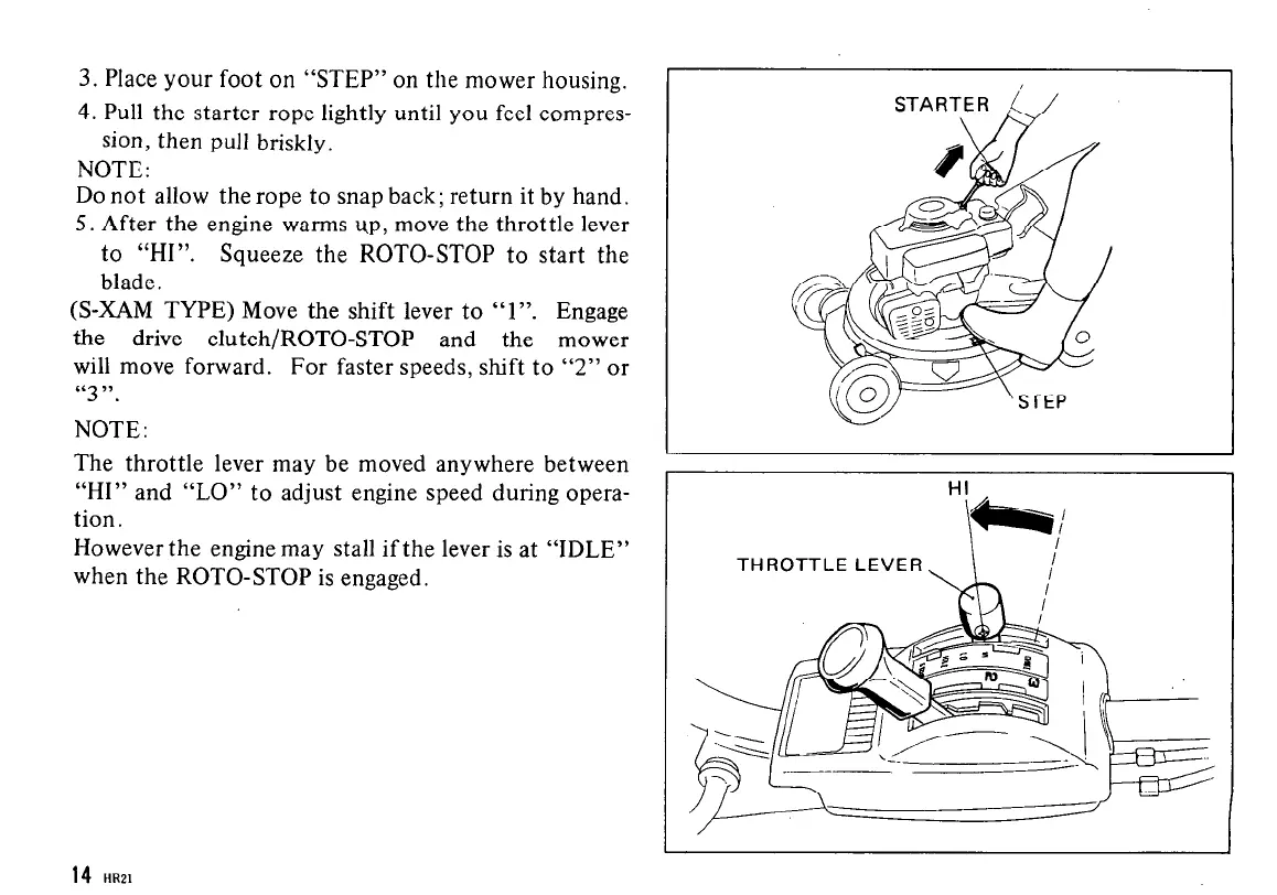 (S-XAM TYPE) Move the shift lever to “1”. Engage