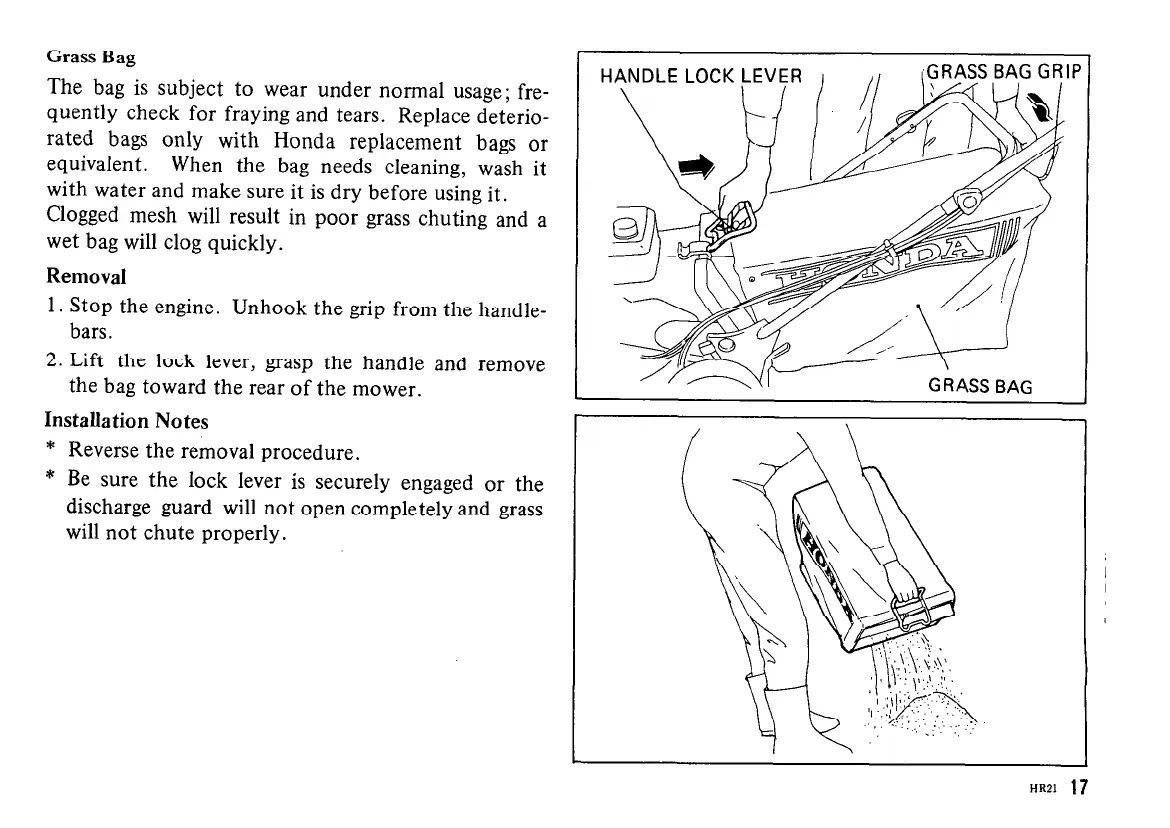 the bag toward the rear of the mower.