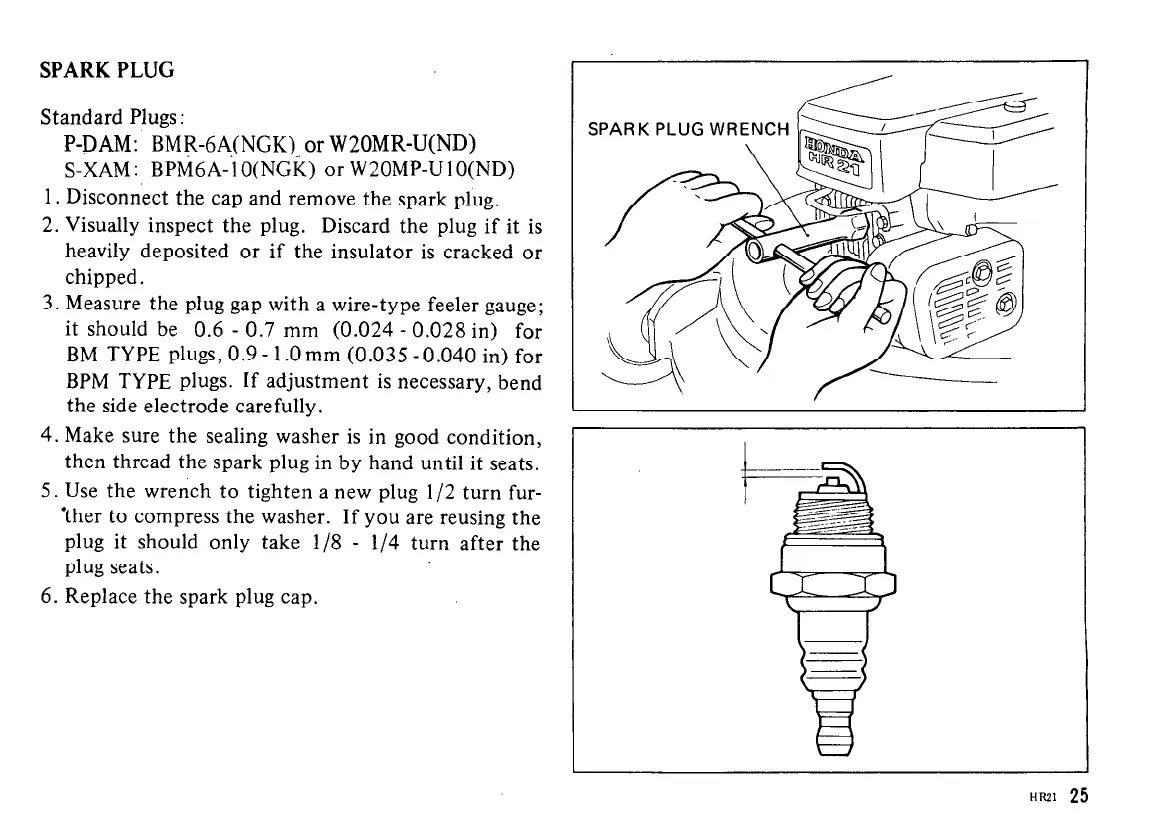 5. Use the wrench to tighten a new plug l/2 turn fur-