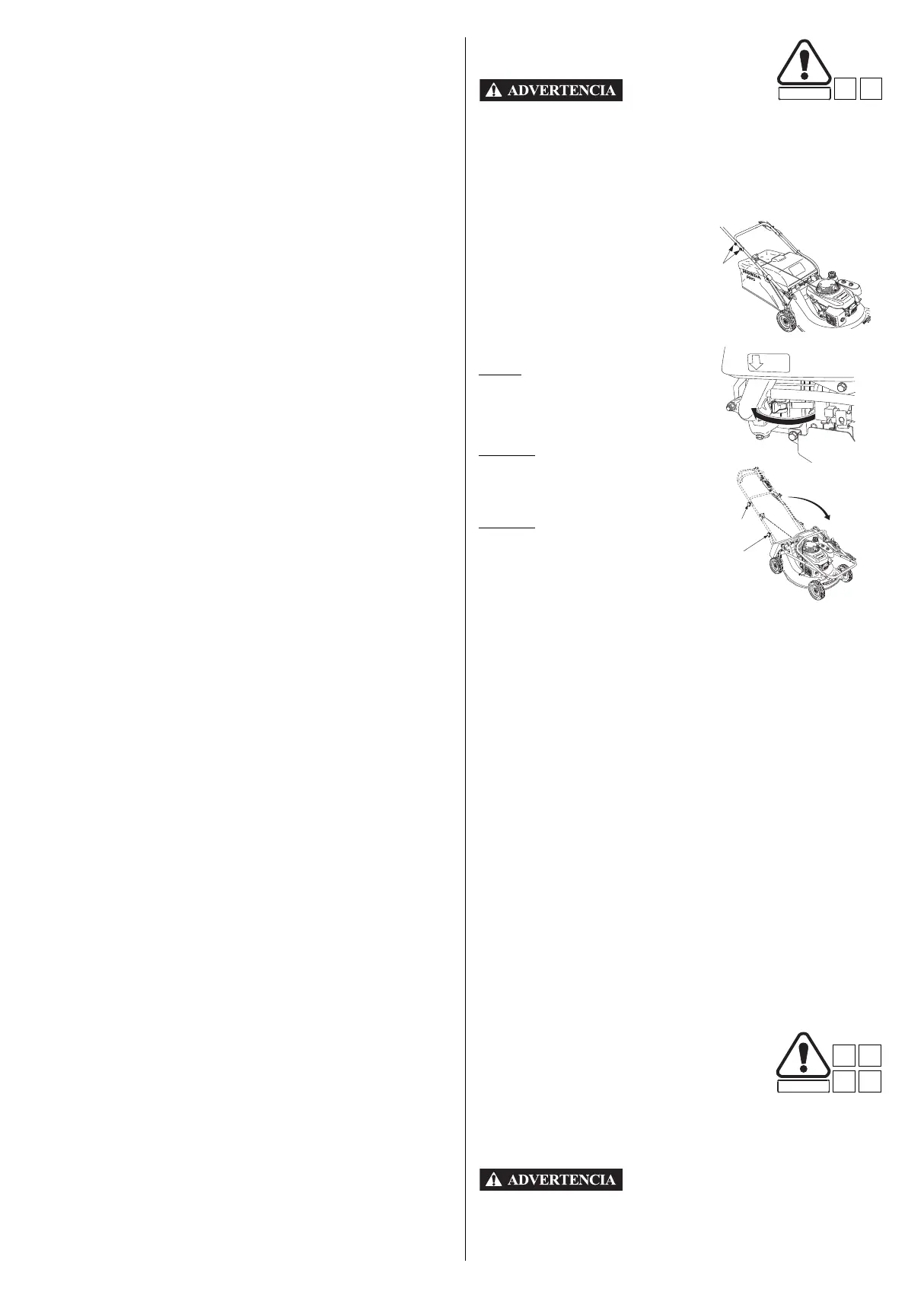 gasolina o aceite, no inclinar el cortacésped. Gasolina