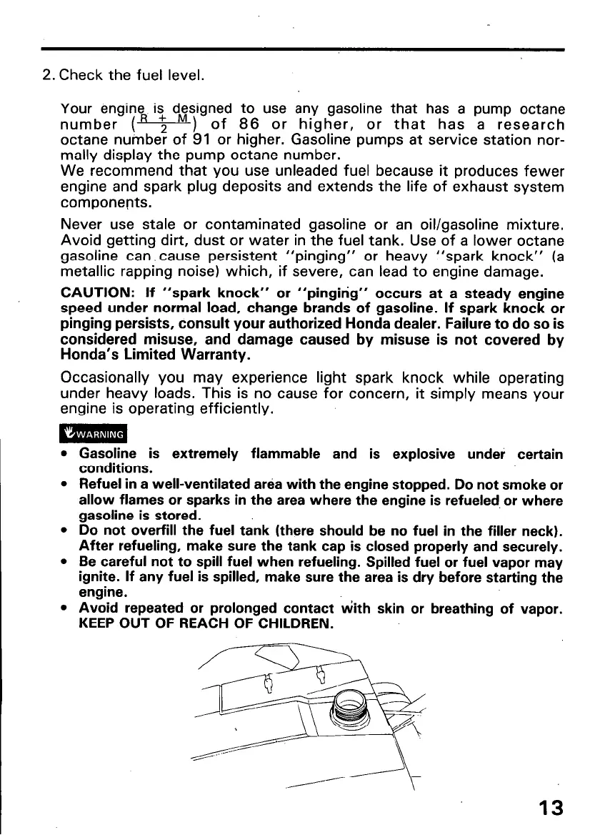 gasoline can, cause persistent “pinging” or heavy “spark knock” (a