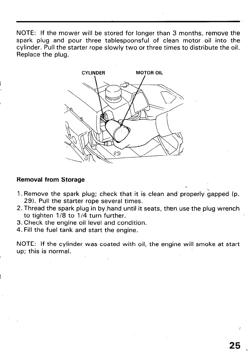 cylinder. Pull the starter rope slowly two or three times to distribute the oil.