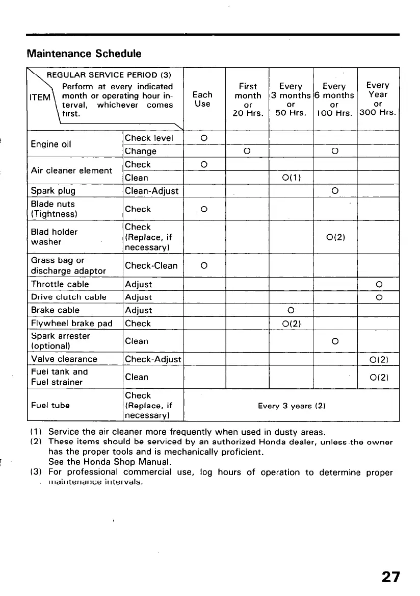 (21 These items should be serviced by an authorized Honda dealer, unless the owner