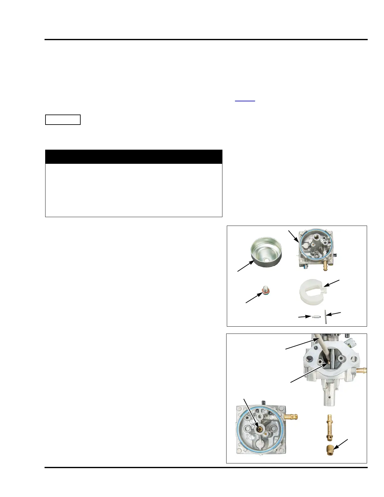 parts such as O-rings, floats, choke valves, and float valve seats. Check the container for instructions. If you are in