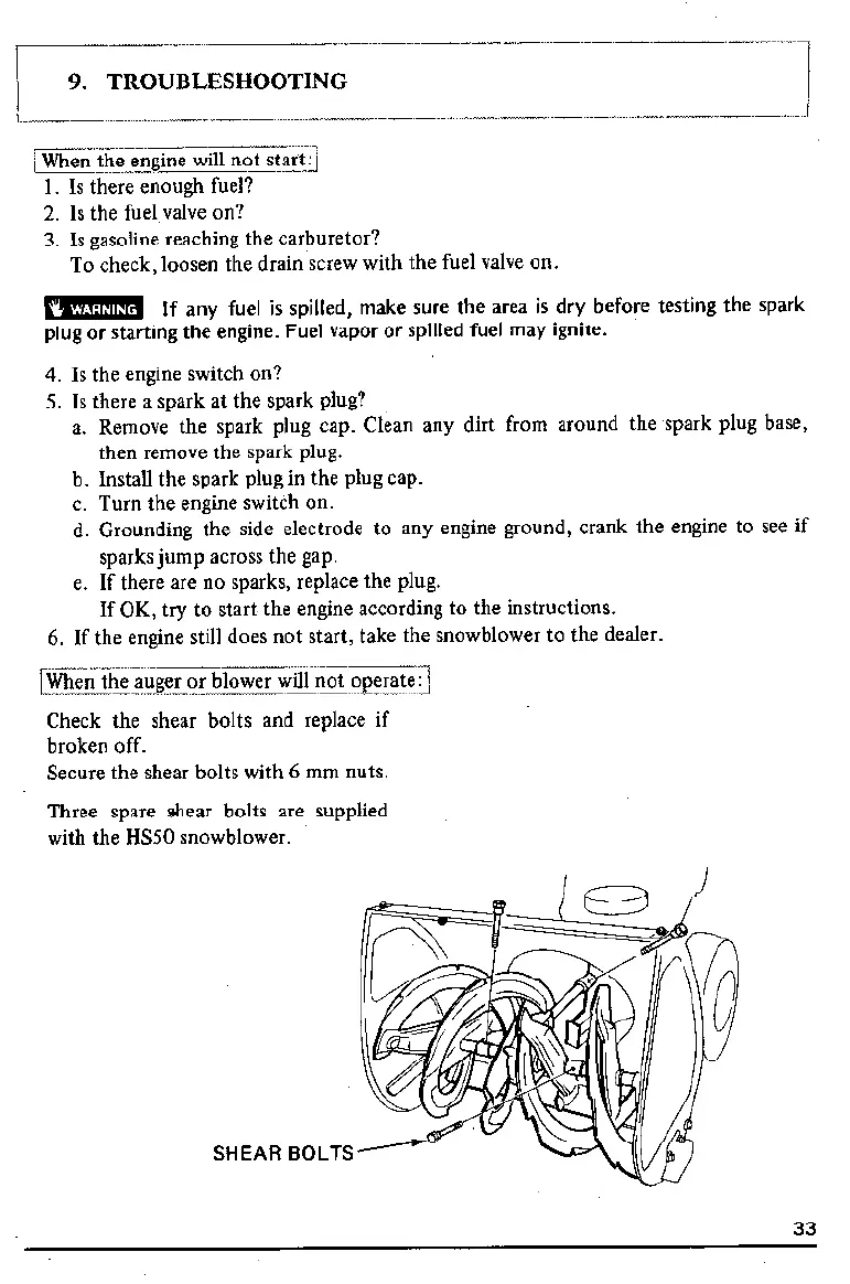 6. If the engine still does not start, take the snowblower to the dealer.
