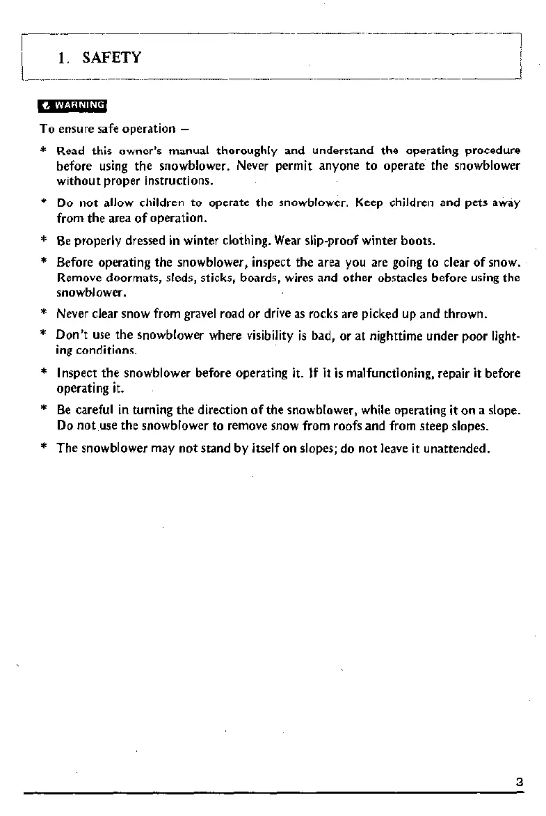 * The snowblower may not stand by itself on slopes; do not leave it unattended.