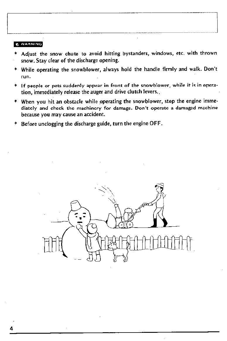 * If people or pets suddenly appear in front of the snowblower, while it is in opera-