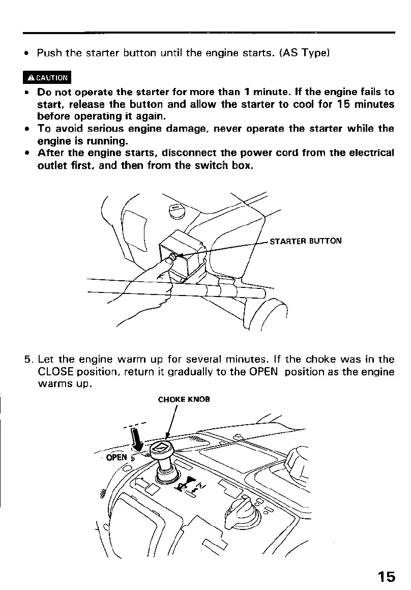 l Do not operate the starter for more than 1 minute. If the engine fails to