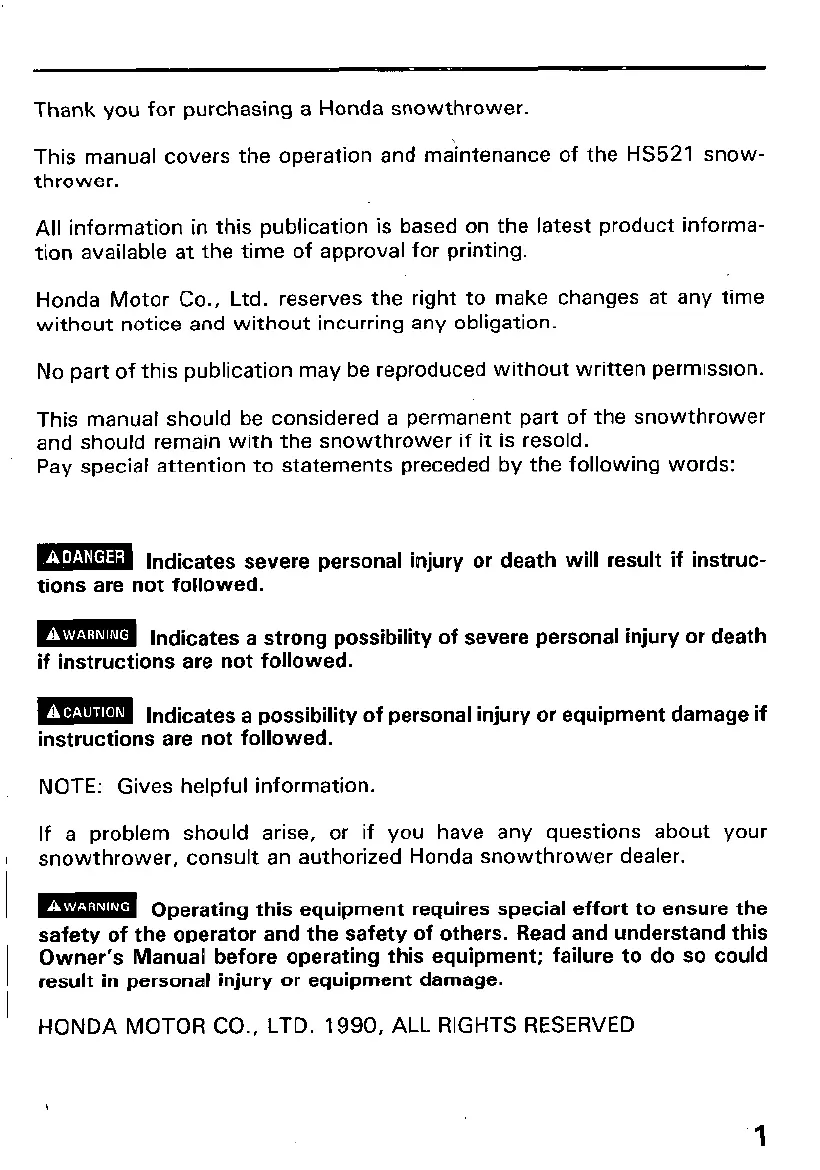 Thank you for purchasing a Honda snowthrower.