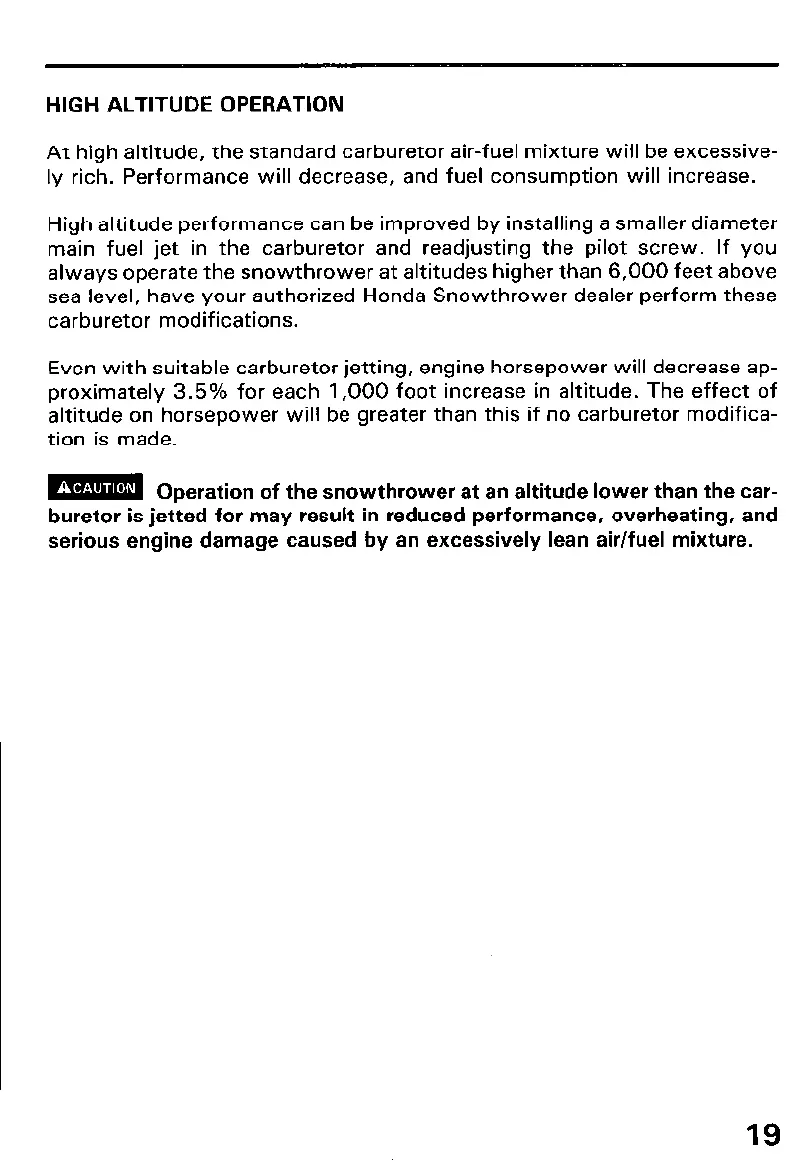 sea level, have your authorized Honda Snowthrower dealer perform these