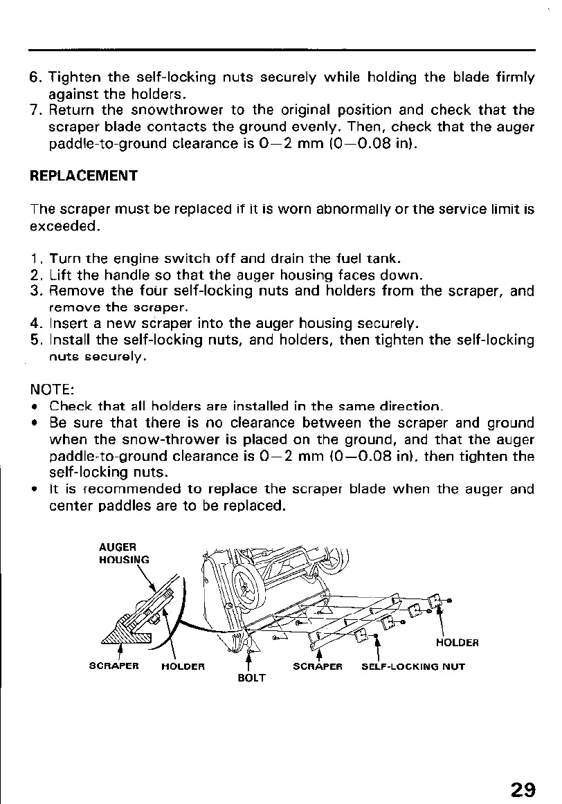 3. Remove the four self-locking nuts and holders from the scraper, and