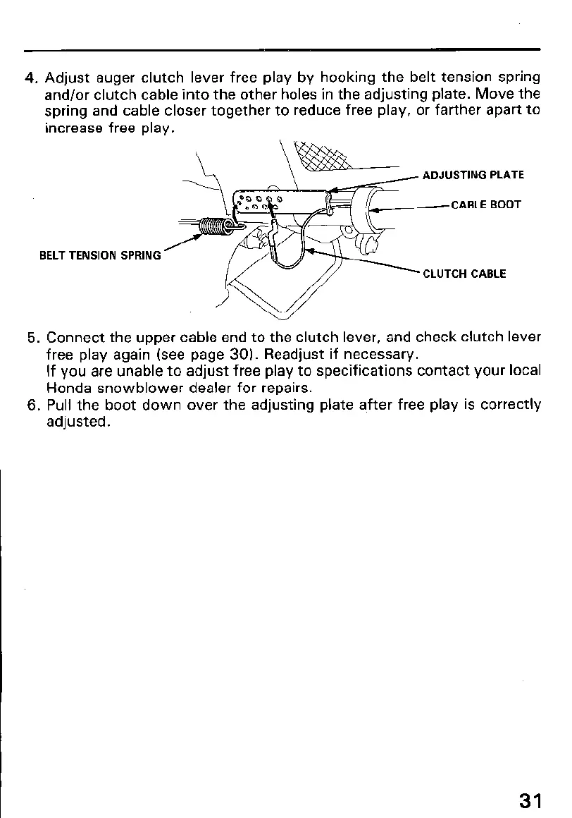4. Adjust auger clutch lever free play by hooking the belt tension spring