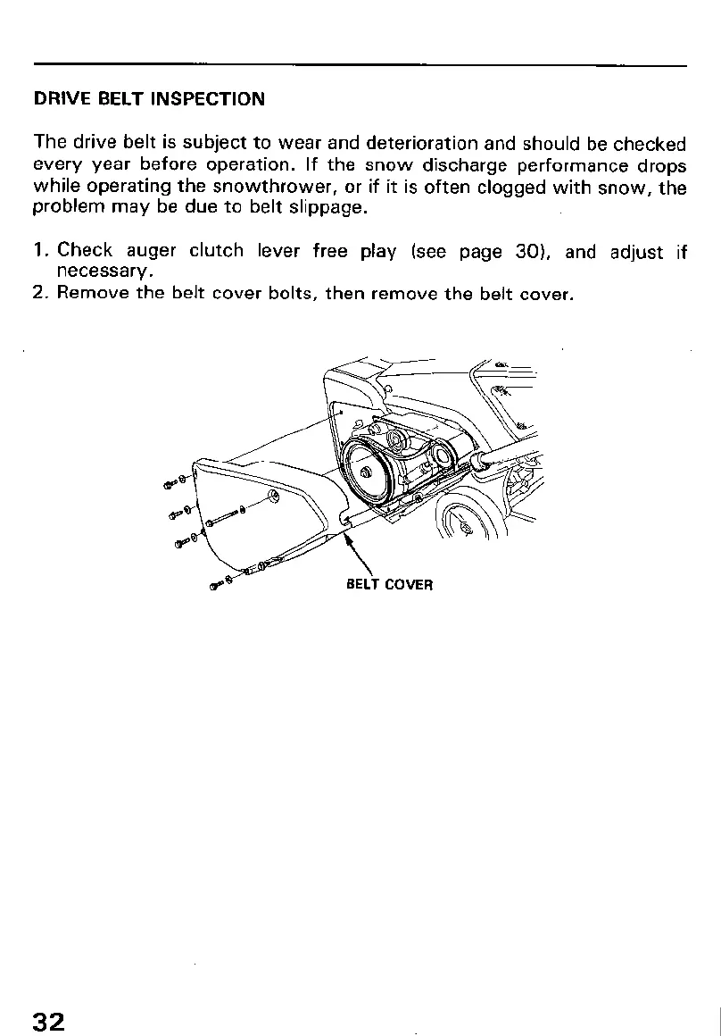 1. Check auger clutch lever free play (see page 301, and adjust if