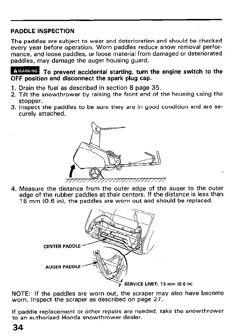 15 mm (0.6 in), the paddles are worn out and should be replaced.