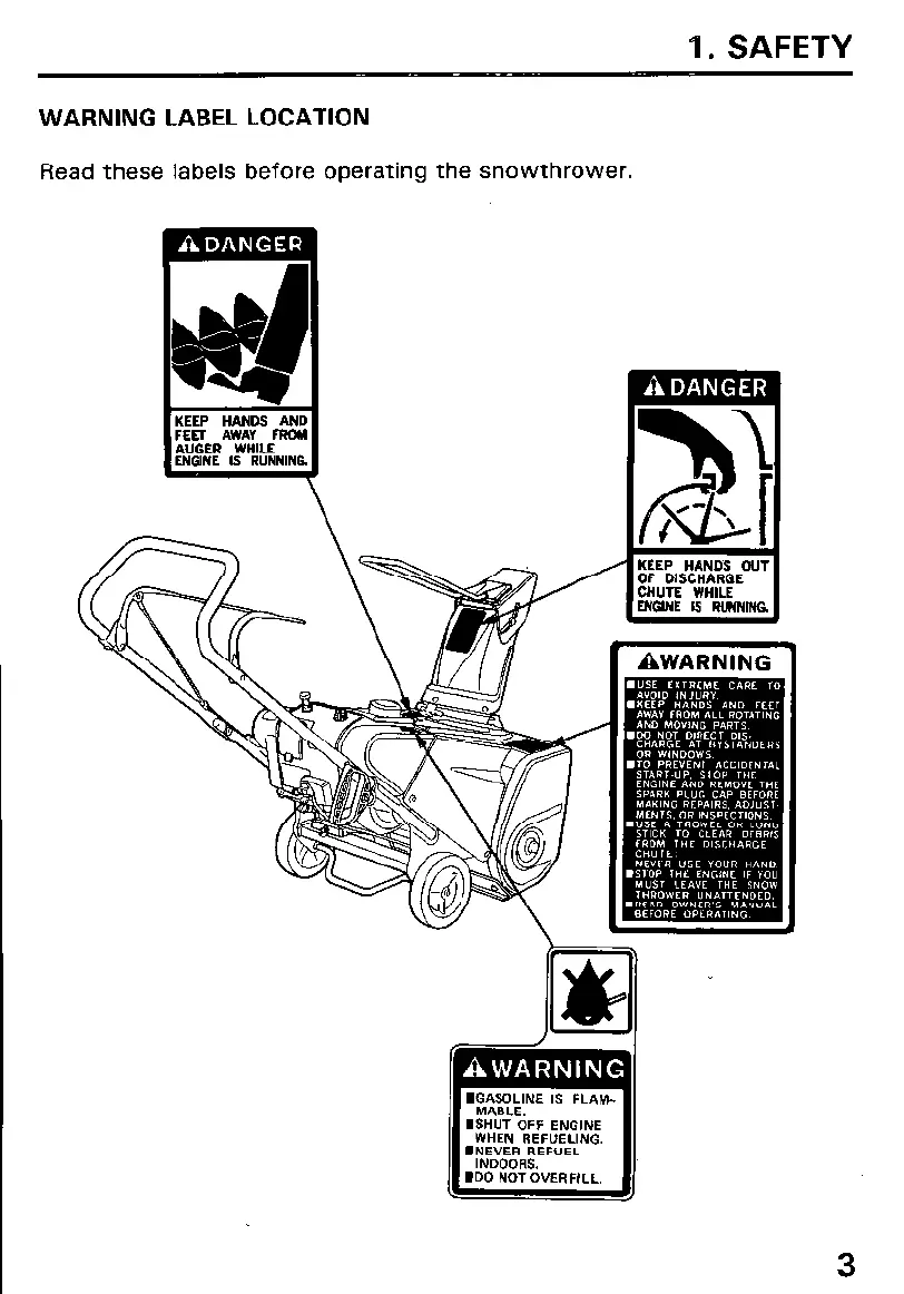 Honda HS521 - SAFETY; WARNING LABEL LOCATION