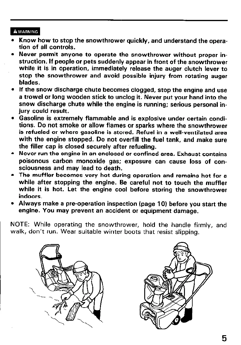 l Never permit anyone to operate the snowthrower without proper in-