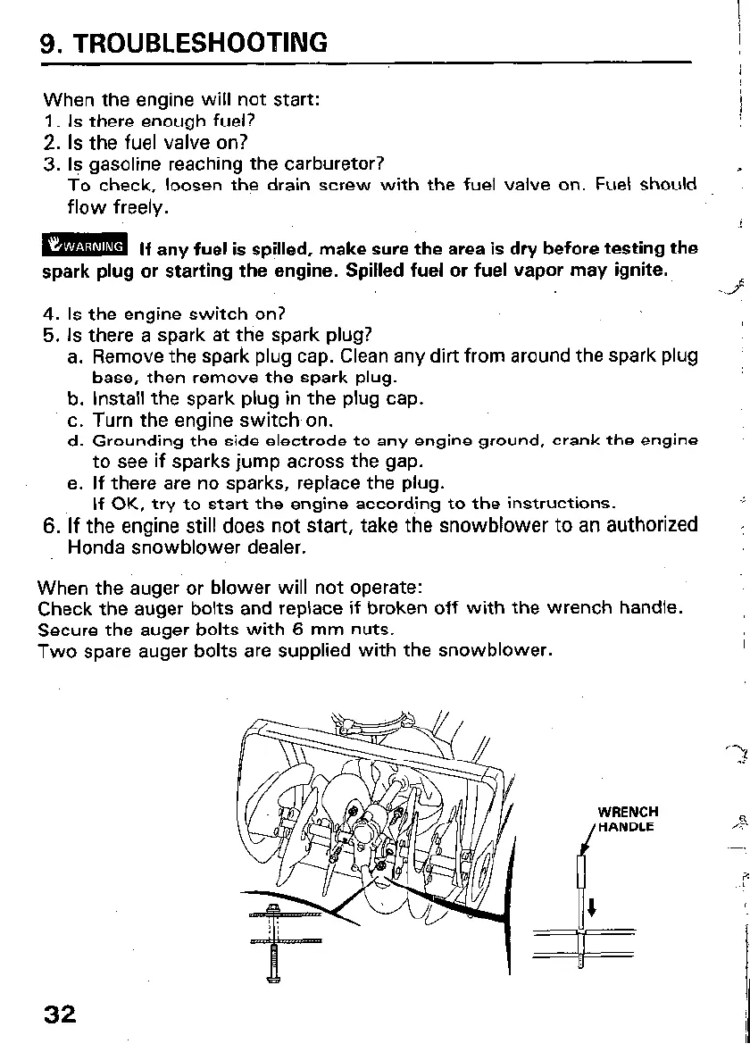 spark plug or starting the engine. Spilled fuel or fuel vapor may ignite.