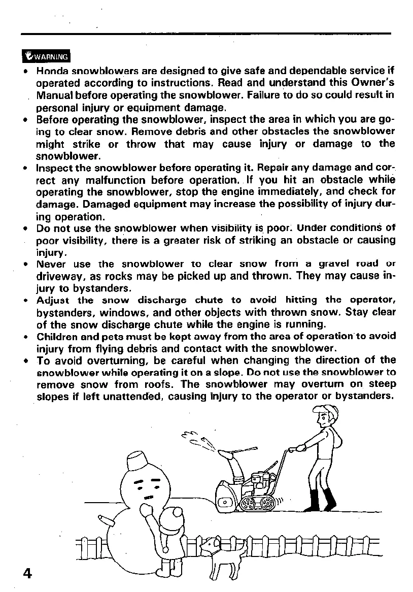Do not use the snowblower when visibility is, poor. Under conditions of
