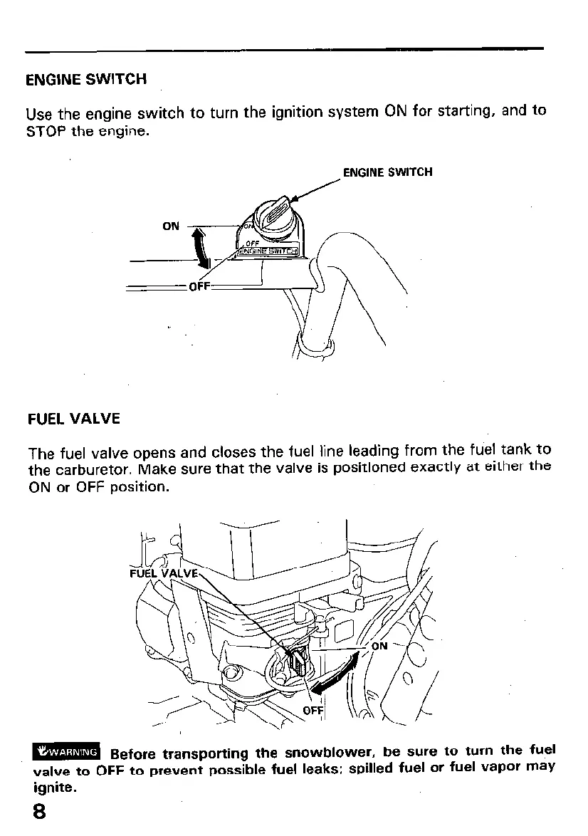 valve to OFF to prevent possible fuel leaks; spilled fuel or fuel vapor may