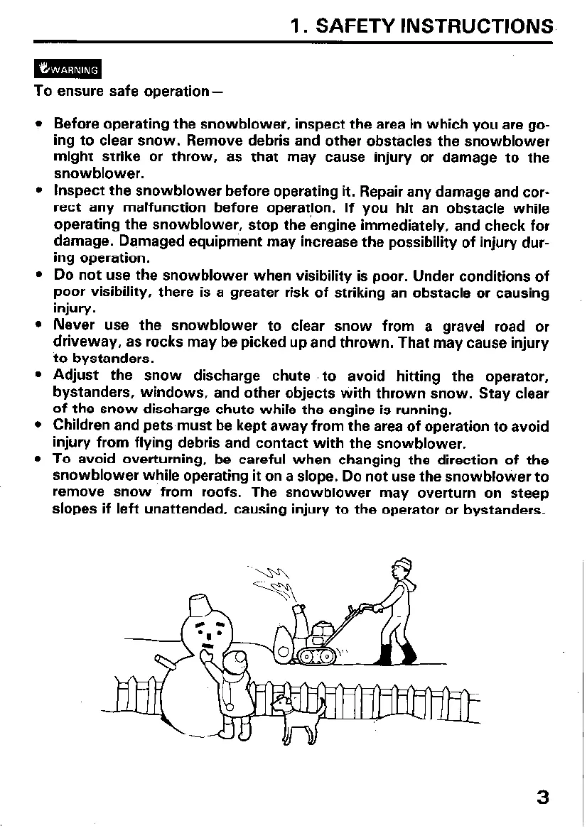 l Adjust the snow discharge chute to avoid hitting the operator,