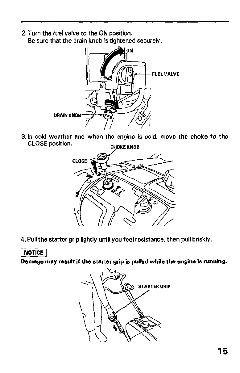 3. In cold weather and when the engine is cold, move the,choke to the