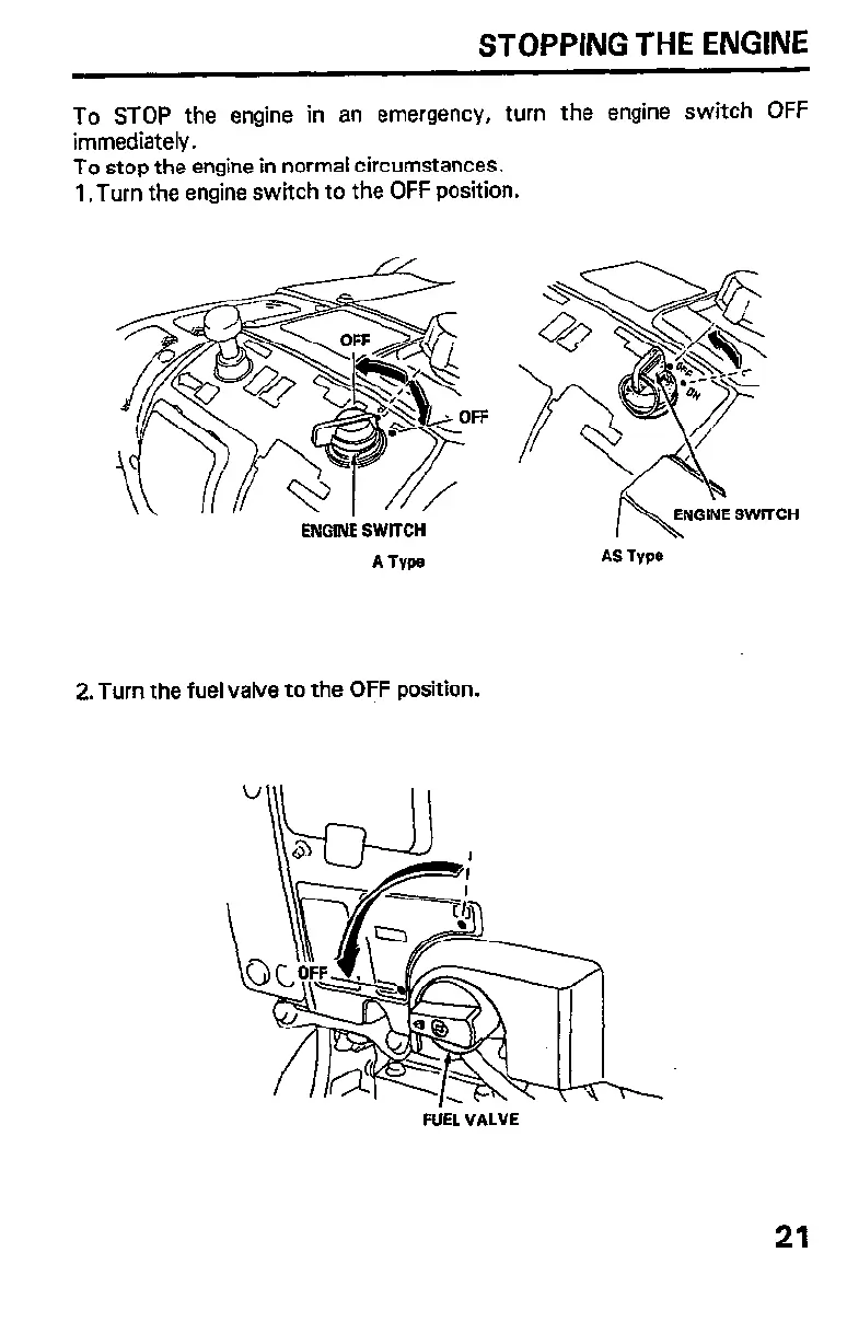 Honda HS621 - STOPPING THE ENGINE; Emergency stop; Normal stop procedure