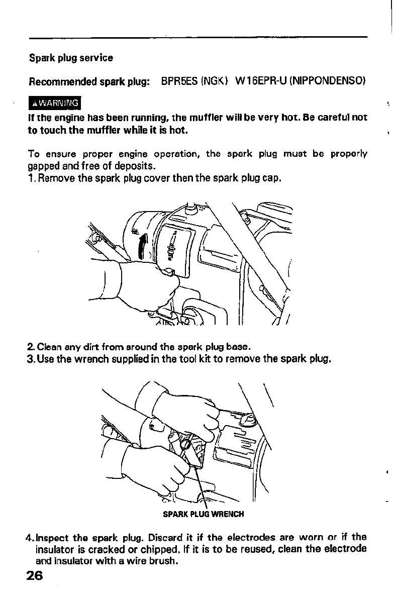 3. Use the wrench supplied in the tool kit to remove the spark plug.