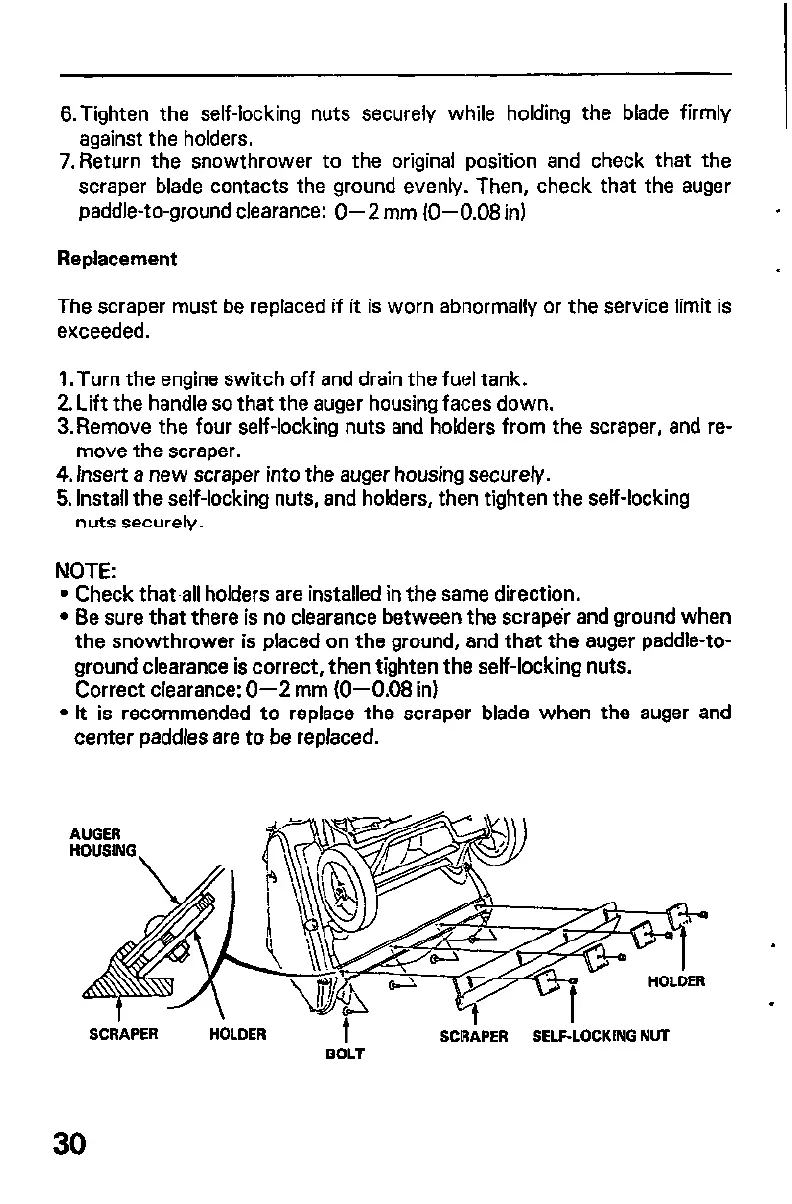 the snowthrower is placed on the ground, and that the auger paddle-to-