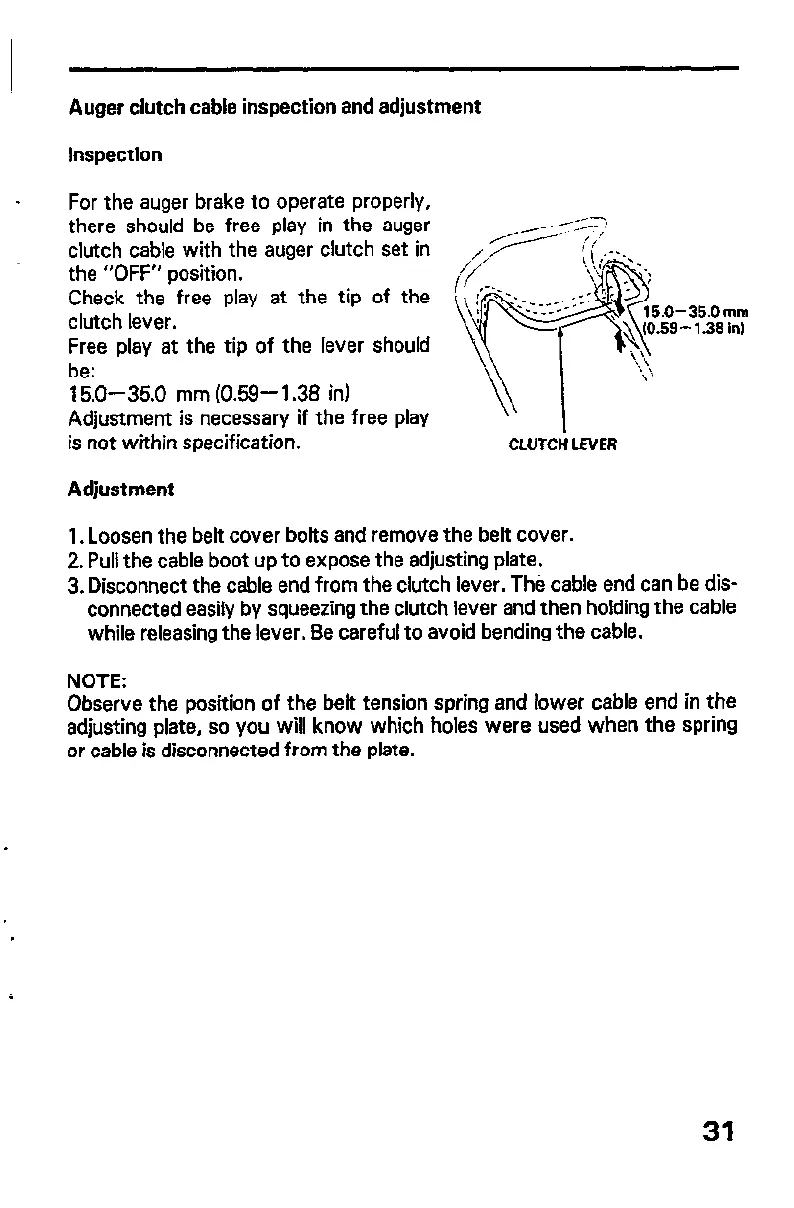 3. Disconnect the cable end from the clutch lever. The cable end can be dis-