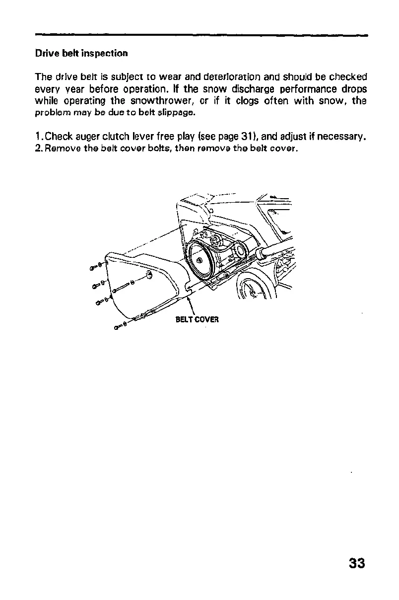 1. Check auger clutch lever free play (see page 311, and adjust if necessary.