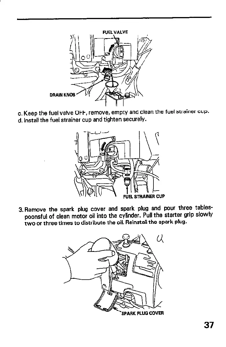 c. Keep the fuel valve OFF, remove, empty and clean the fuel strainer cup.