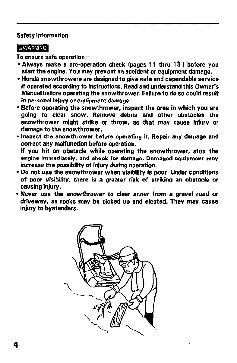 * Always make a pre-operation check (pages 11 thru 13 1 before you