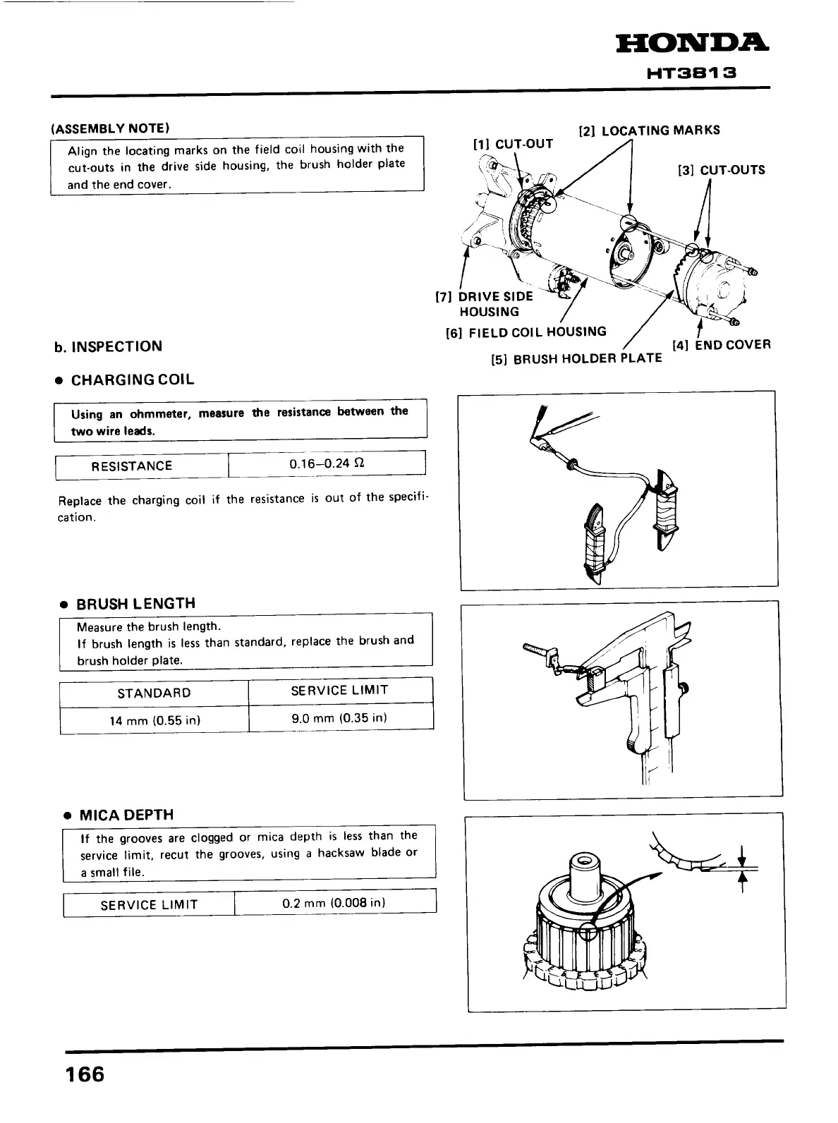 Honda HT3813 - Charging Coil Inspection; Brush Length Inspection; Mica Depth Inspection