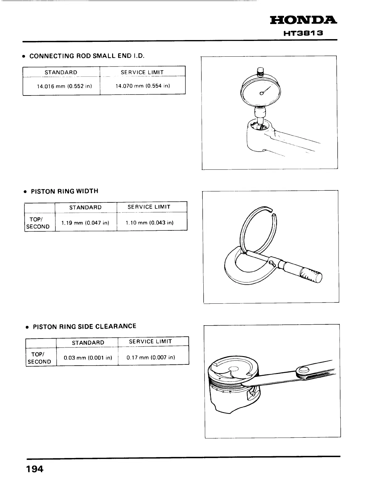 Honda HT3813 - Connecting Rod Small End I.D.; Piston Ring Width; Piston Ring Side Clearance