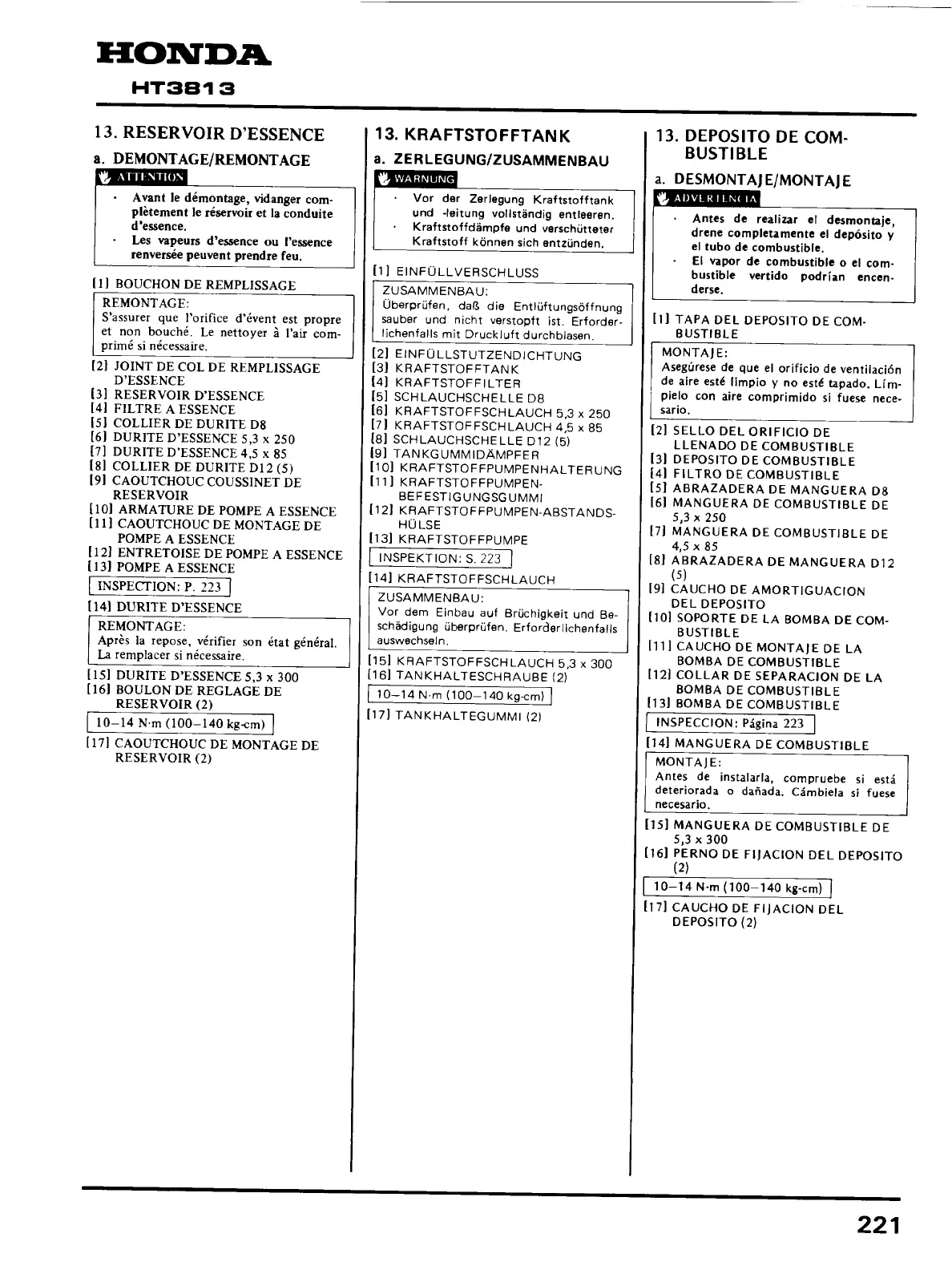 Honda HT3813 - Page 221