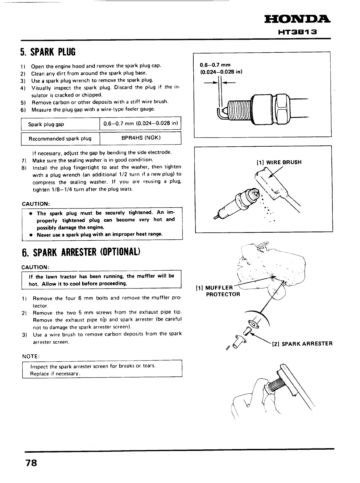 Honda HT3813 - Spark Plug; Spark Arrester (Optional)